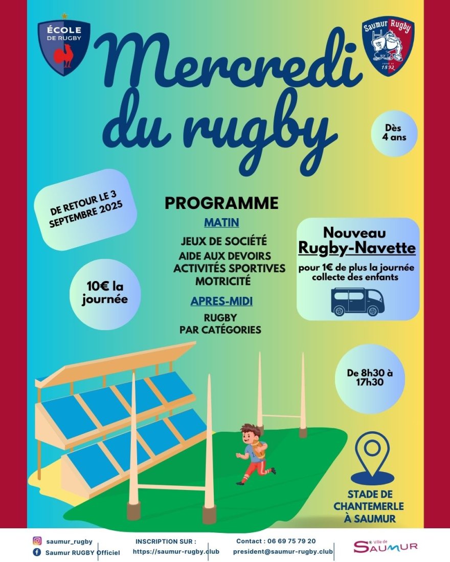 LES MERCREDIS DU RUGBY - Inscription 2025 / 2026 - 1/2 Journée - De septembre à décembre 2025